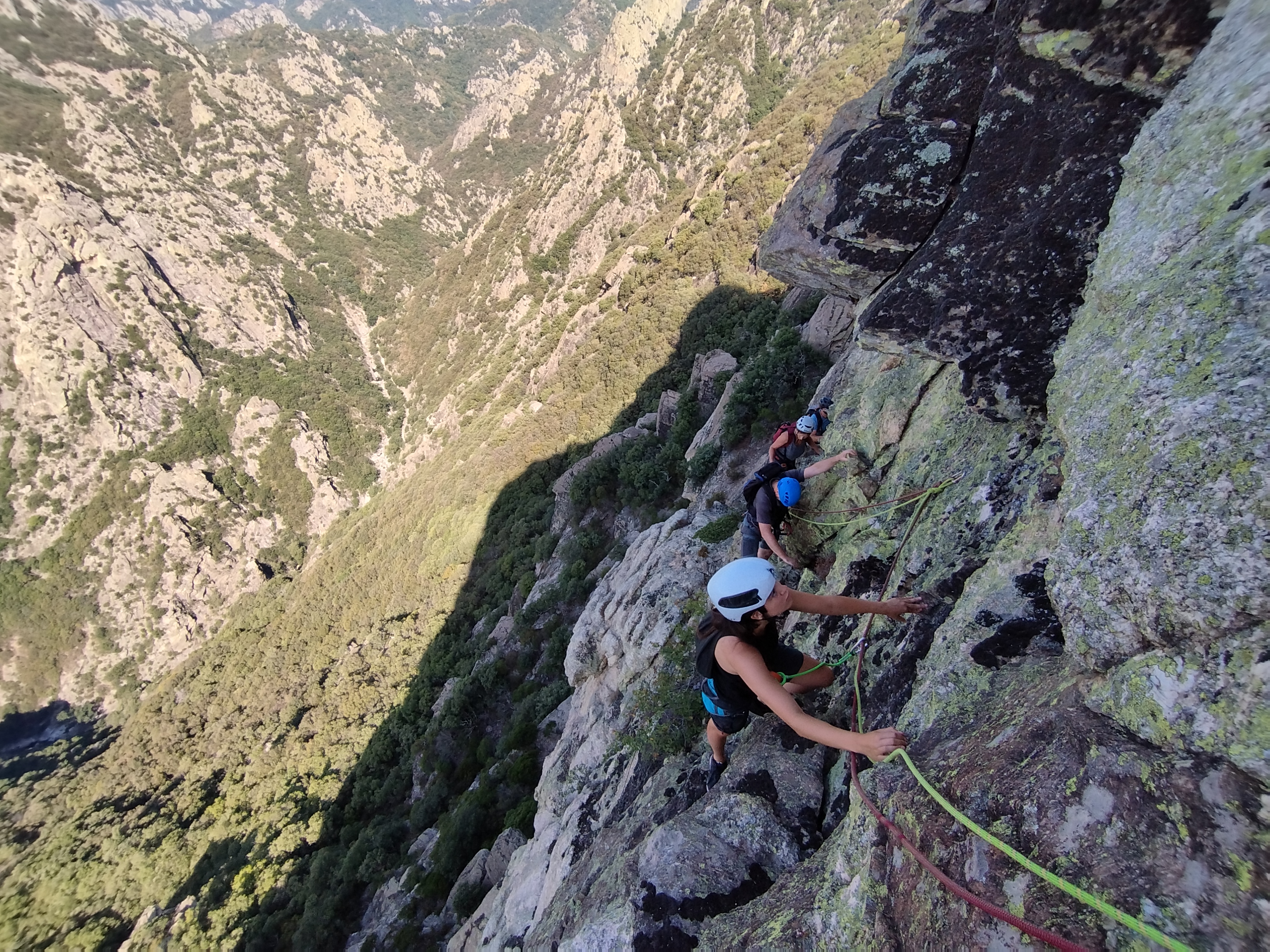 Sous l'œil des mouflons. La traversée avant de rejoindre le premier relais.